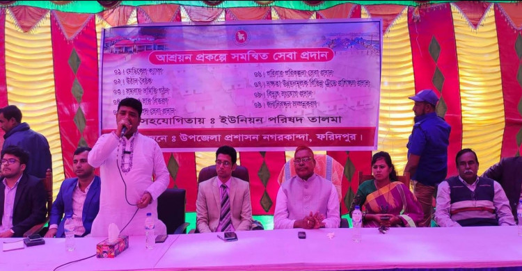 নগরকান্দায় আশ্রয়ণ প্রকল্পের সুবিধা ভোগীদের মাঝে সেবা দিতে উপজেলা প্রশাসন