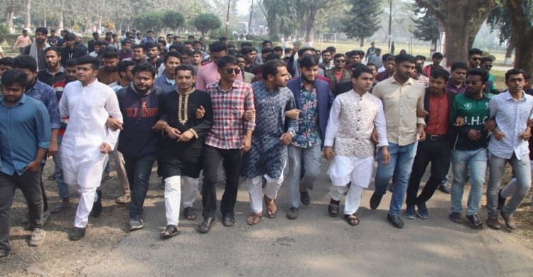 শাখা ছাত্রলীগের সভাপতি ফয়সাল সিদ্দিকী আরাফাত ও সাধারণ সম্পাদক নাসিম আহমেদ জয়ের নেতৃত্বে সকাল সাড়ে ১১টার দিকে সংগঠনটির দলীয় টেন্ট থেকে মিছিলটি শুরু হয়। মিছিলটি ক্যাম্পাসের বিভিন্ন সড়ক ও একাডেমিক ভবনসমূহ ঘুরে একই স্থানে গিয়ে সমবেত হয়। পরে সেখানে আলোচনা সভা অনুষ্ঠিত হয়।