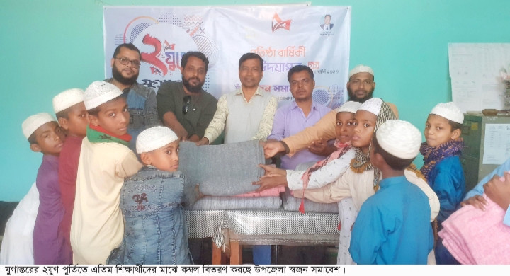 দুর্গাপুরে এতিম শিক্ষার্থীদের মাঝে কম্বল বিতরণ