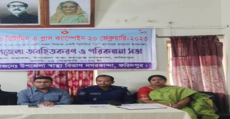 সারা দেশে একযোগে ২০ ফেব্রুয়ারী জাতীয় ভিটামিন 'এ' প্লাস ক্যাম্পেইন উপলক্ষে ১৯ ফেব্রুয়ারি রবিবার দুপুরে নগরকান্দা উপজেলা স্বাস্থ্য বিভাগের আয়োজনে উপজেলা স্বাস্থ্য কমপ্লেক্সের সভা কক্ষে ক্যাম্পেইন উপলক্ষে অবহিত করন সভা অনুষ্ঠিত হয়।