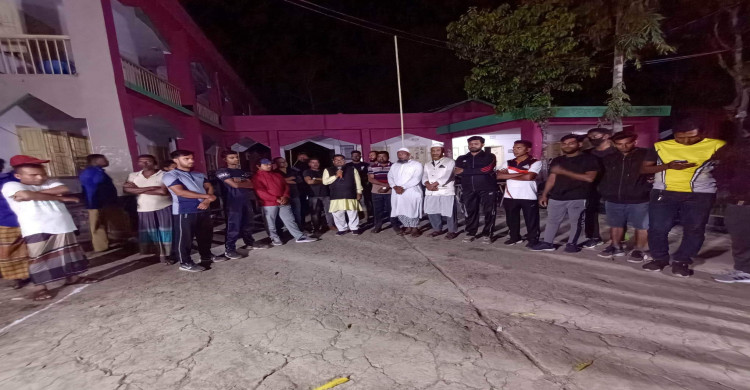 বাকেরগঞ্জে বিএনপি নেতার মামলা প্রত্যাহারের দাবিতে মানববন্ধন, মামলা আতঙ্কে গ্রাম ছাড়া পুরুষ