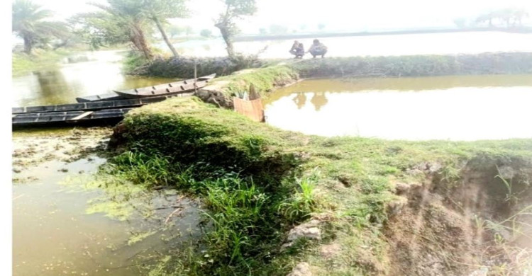 খুলনার সিংগা খালে ক্রসবাধঁ দিয়ে মাছ চাষঃ গ্রাম প্লাবিত হওয়ার শংকা