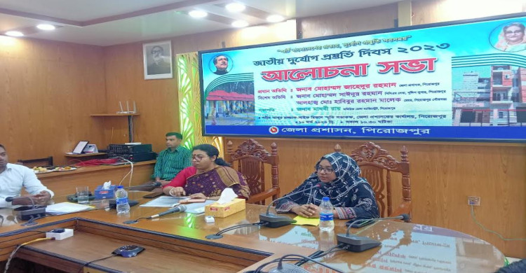 স্মার্ট বাংলাদেশের প্রত্যয় দুর্যোগ প্রস্তুতি সবসময়" প্রতিপাদ্য বিষয় নিয়ে পিরোজপুরে পালিত হয়েছে জাতীয় দুর্যোগ প্রস্তুতি দিবস -২০২৩ পিরোজপুর জেলা প্রশাসন এর আয়োজনে র্যালী ও আলোচনা সভা অনুষ্ঠিত হয় জেলা প্রশাসক কার্যালয়ের শহীদ আব্দুর রাজ্জাক-সাইফ-মিজান স্মৃতি সভাকক্ষে অতিরিক্ত জেলা ম্যাজিস্ট্রেট মাধবী রায় এর সভাপতিত্বে অতিথি হিসেবে বক্তব্য রাখেন সদর উপজেলা নির্বাহী অফিসার মরিয়ম জাহান,বীর মুক্তিযোদ্ধা এম এ রব্বানী ফিরোজ পিরোজপুর ফায়ার সার্ভিস ও সিভিল ডিফেন্সের সহকারী উপ-পরিচালক মোহাম্মদ শামসুজ্জোহা বাংলাদেশ রেড ক্রিসেন্ট সোসাইটি পিরোজপুরে সহকারি পরিচালক মাহবুবুর রহমান মিলন এনজিও প্রতিনিধি উদ্দীপন পিরোজপুর অঞ্চলের আঞ্চলিক ব্যবস্থাপক কাইয়ুম হোসেন জেলা বাস শ্রমিক ইউনিয়নের সভাপতি হান্নান শেখ উদ্দীপন শিশু ও যুব ক্লাব প্রতিনিধি অমিত বিশ্বাস সহ অন্যান্য অতিথিবৃন্দ এ সময় বক্তব্য রাখেন।অনুষ্ঠানে উপস্থিত ছিলেন বিভিন্ন শিক্ষা প্রতিষ্ঠানের ছাত্র-ছাত্রীবৃন্দ উদ্দীপন শিশু ও যুব ক্লাবের স্বেচ্ছাসেবকবৃন্দ বাংলাদেশ রেড ক্রিসেন্ট সোসাইটি পিরোজপুর ইউনিটে যুব স্বেচ্ছাসেবকবৃন্দ এ সময় উপস্থিত ছিলেন। র্যালী ও আলোচনা সভার পূর্বে পিরোজপুর ফায়ার সার্ভিস ও সিভিল ডিফেন্সের আয়োজনে অগ্নিকান্ড ও ঘূর্ণিঝড়ে প্রস্তুতি মূলক মহড়া অনুষ্ঠিত হয়।