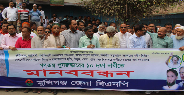 ১০ দফা দাবি আদায়ে মুন্সিগঞ্জে বিএনপির মানববন্ধন