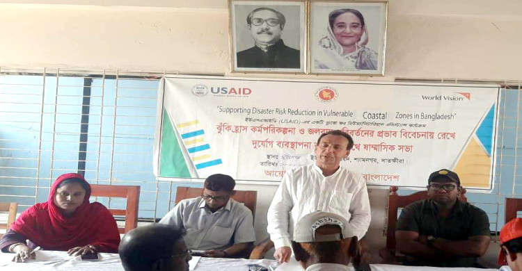 সাতক্ষীরা শ্যামনগর উপজেলার ৭নং মুন্সিগঞ্জ ইউনিয়ন পরিষদে ঝুঁকি হ্রাস কর্মপরিকল্পনা ও জলবায়ু পরিবর্তনের প্রভাব বিবেচনায় রেখে মুন্সিগঞ্জ ইউনিয়ন দুর্যোগ ব্যবস্থাপনা কমিটির সাথে ষান্মাসিক সভা অনুষ্ঠিত হয়েছে। সোমবার (১৩ মার্চ) সকাল ১০ টায় মুন্সিগঞ্জ ইউনিয়ন পরিষদ হলরুমে ইউএসএআইডি এর অর্থায়নে, ওয়ার্ল্ড ভিশন বাংলাদেশ কর্তৃক বাস্তবায়িত এস ডি আর আর প্রকল্পের কার্যক্রমের আওতায় দুর্যোগ ঝুঁকি হ্রাস কর্মপরিকল্পনা ও জলবায়ু পরিবর্তনের প্রভাব বিবেচনায় রেখে মুন্সিগঞ্জ ইউনিয়ন দুর্যোগ ব্যবস্থাপনা কমিটির সাথে ষান্মাসিক সভা অনুষ্ঠিত হয়। মুন্সিগঞ্জ ইউপি চেয়ারম্যান ও ইউনিয়ন দুর্যোগ ব্যবস্থাপনা কমিটির সভাপতি অসিম মৃধা সভায় শুভেচ্ছা বক্তব্য ও শুভ উদ্বোধন করেন। আলোচনা সভায় অংশগ্রহণকারীগণ ইউনিয়ন এর বিভিন্ন বিষয় ভিত্তিক আলোচনা তুলে ধরেন এবং সিদ্ধান্ত গ্রহণ করেন তার মধ্যে আর আর এ পি আপডেট করা, জলবায়ু পরিবর্তনে তাদের করনীয় বিষয় সমূহ, সাইক্লোন সেল্টার পরিদর্শন করে সমস্যা সমূহ চিহ্নিত করে দ্রুত ব্যবস্থা গ্রহণ করা ও ভিত উঁচু করন । সভা পরিচালনা করেন এস ডি আর আর প্রকল্প কর্মকর্তা (ডি আর আর) দিপঙ্ককর সাহা। সভায় উপস্থিত ছিলেন ইউনিয় দুর্যোগ ব্যবস্থাপনা কমিটির সদস্য বৃন্দ ।