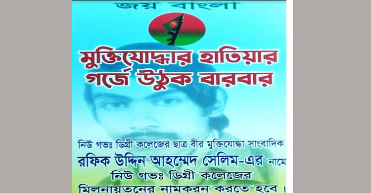 বীরমুক্তিযোদ্ধা-সাংবাদিক সেলিমের নামে নিউ গভঃ ডিগ্রী কলেজ অডিটোরিয়ামের নামকরনের দাবী জাসদের