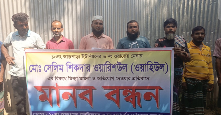 মধুখালীতে ইউপি সদস্য সেলিম শিকদারের বিরুদ্ধে মিথ্যা মামলার প্রতিবাদে মানববন্ধন