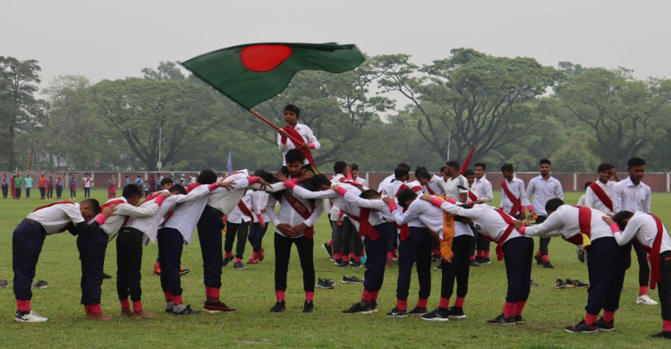 দিনের শুরুতে বিশ্ববিদ্যালয়ের সকল অফিস, আবাসিক হল, শিক্ষা প্রতিষ্ঠানে সূর্যদয়ের সাথে সাথে জাতীয় পতাকা উত্তোলন করা হয়। পরে বিশ্ববিদ্যালয়ের স্টেডিয়ামে কুচকাওয়াজ ও শারীরিক কসরত প্রদর্শনীর আয়োজন করা হয়। বিশ্ববিদ্যালয় প্রাঙ্গণে অবস্থিত স্কুল কলেজের শিশু কিশোরদের অংশগ্রহণে এই কুচকাওয়াজ অনুষ্ঠিত হয়। কুচকাওয়াজ ও শারীরিক কসরত প্রদর্শনী শেষে বিজয়ীদের মাঝে পুরষ্কার তুলে দেন বিশ্ববিদ্যালয়ের উপাচার্য অধ্যাপক ড. লুৎফুল হাসান।