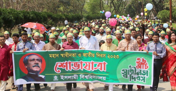 নানা আয়োজনের মধ্য দিয়ে ইসলামী বিশ্ববিদ্যালয়ে (ইবি) মহান স্বাধীনতা ও জাতীয় দিবস-২০২৩ উদযাপন করা হয়েছে। দিবসটি উপলক্ষে দোয়া মাহফিল, বর্ণাঢ্য শোভাযাত্রা, শ্রদ্ধাঞ্জলি নিবেদন এবং গার্ড অব অনারসহ জাতীয় পতাকা উত্তোলন করেছে বিশ্ববিদ্যালয় কর্তৃপক্ষ।