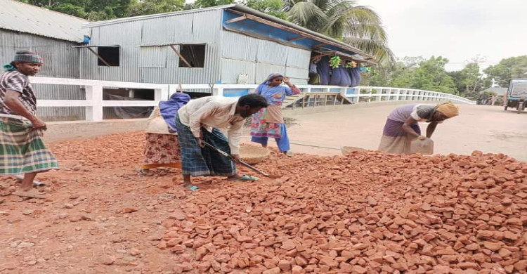 বুধবার দুপুরে (২৯ মার্চ) সরেজমিন গিয়ে দেখা গেছে খুবই নিম্নমানের ইটের খোয়া ব্যবহার করে ব্রিজের দুই পাশের সড়কের সংস্কার কাজ করা হচ্ছে। সেখানে সাংবাদিকদের উপস্থিতি টের পেয়ে ঠিকাদার ও এলজিইডির দায়িত্বপ্রাপ্ত কর্মকর্তা খুব দ্রুত পালিয়ে যান।