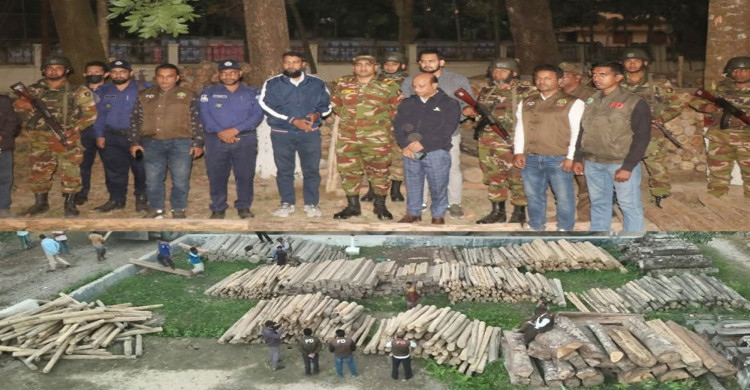বান্দরবানে অবৈধ কাঠ ডিপো ও চেরাই মিলে সেনাবাহিনীর অভিযানে কোটি টাকার অবৈধ কাঠ জব্দ.