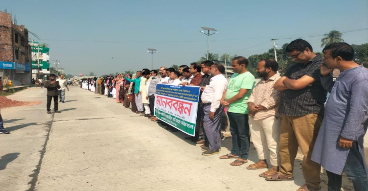 রায়গঞ্জে সাবেক অধ্যক্ষের দুর্নীতির প্রতিবাদে শিক্ষক-শিক্ষার্থীদের মানববন্ধন