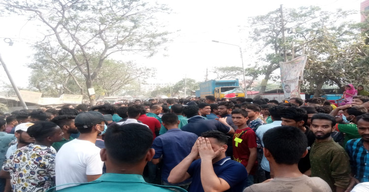 বেতন-বোনাসের দাবিতে গার্মেন্টস শ্রমিকদের সড়ক অবরোধ