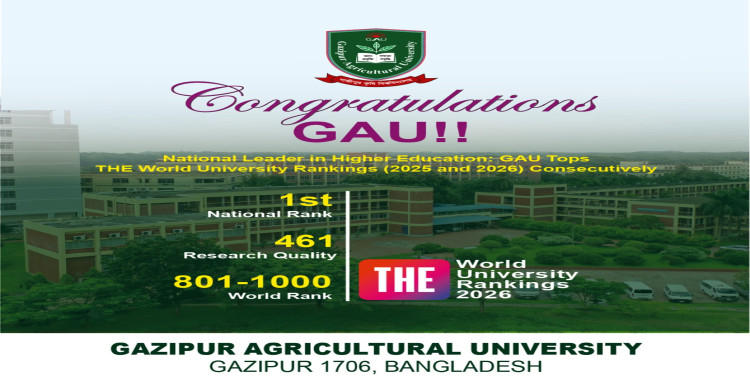 টিএইচই র্যাঙ্কিংয়ে আবারও শীর্ষে গাজীপুর কৃষি বিশ্ববিদ্যালয়