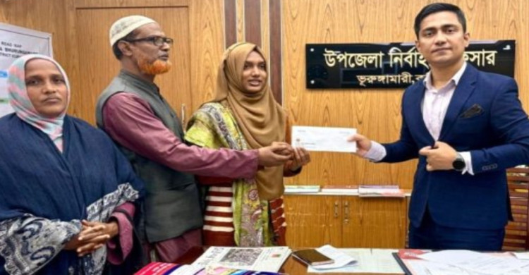 রংপুর মেডিকেলে ভর্তির সুযোগ পাওয়ায় মেধাবী শিক্ষার্থী সাদিয়া খানম শেফাকে প্রশাসনের অনুদান