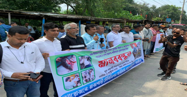 সাংবাদিকদের ওপর হামলার প্রতিবাদে রাজশাহীতে মানববন্ধন