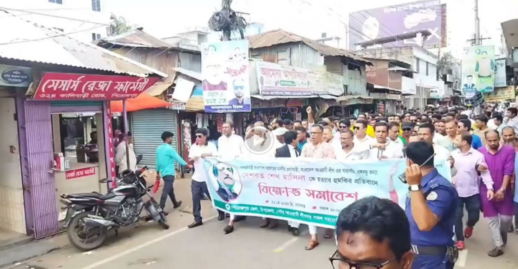 প্রধানমন্ত্রী শেখ হাসিনাকে প্রকাশ্যে হত্যার হুমকির প্রতিবাদে পিরোজপুরে আওয়ামীলীগের বিক্ষোভ মিছিল