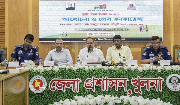 খুলনা বিভাগীয় ও জেলা প্রশাসনের উদ্যোগে ভূমিসেবা সপ্তাহ-২০২৩ এর উদ্বোধন উপলক্ষ্যে আলোচনা সভা ও প্রেস কনফারেন্স আজ সোমবার (২২ মে) দুপুরে জেলা প্রশাসকের সম্মেলনকক্ষে অনুষ্ঠিত হয়। এতে প্রধান অতিথি ছিলেন খুলনার বিভাগীয় কমিশনার মোঃ জিল্লুর রহমান চৌধুরী। ভূমিসেবা সপ্তাহ উদযাপনে এবারের প্রতিপাদ্য ‘স্মার্ট ভূমিসেবায় ভূমি মন্ত্রণালয়’।