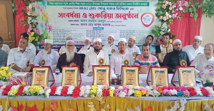 অনুষ্ঠানে প্রতিষ্টানের প্রতিষ্ঠাতা মরহুম মাস্টার আলী নোয়াভ হিযবুল্লাহকে মরণোত্তর সম্মাননা স্বারক, পরিচালনা কমিটির পক্ষ থেকে নির্বাচিত সংবর্ধিত মাওলানা আবু বকর ছিদ্দিক কে সম্মাননা স্বারক, মেয়র আবদুল মালেককে সম্মননা স্বারক, উপজেলা মাধ্যমিক শিক্ষা অফিসার মোঃ নাছির উদ্দিন ও প্রতিষ্টানের সভাপতি আলহাজ্ব আবদুল কুদ্দুস কোম্পানীকে সম্মাননা স্বারক প্রদান করা হয়।