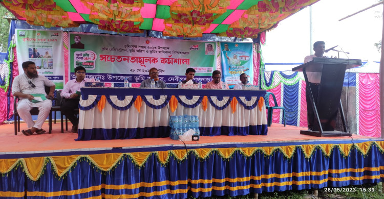 পঞ্চগড়ের দেবীগঞ্জে ভূমি সেবা সপ্তাহের সমাপনী দিবসে ভূমি বিষয়ক সচেতনতামূলক কর্মশালা অনুষ্ঠিত হয়। রবিবার (২৮ এপ্রিল) সচেতনতামূলক এই কর্মশালা আয়োজন করে উপজেলা ভূমি অফিস।