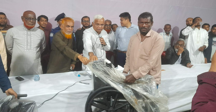 নবাবগঞ্জে সমাজ কল্যান মন্ত্রীর হুইল চেয়ার বিতরণ