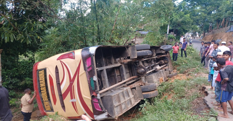 রাজস্থলীতে নিয়ন্ত্রন হারিয়ে বাস খাদে, আহত ১