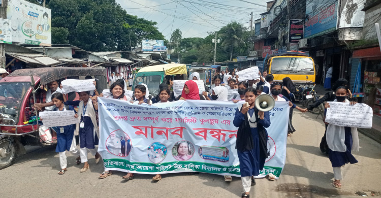 দোহারে প্রধান শিক্ষকের অপসারণের দাবীতে শিক্ষার্থীদের মানববন্ধন