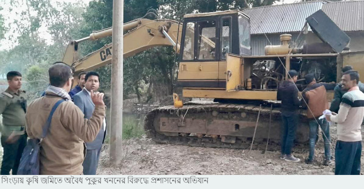 সিংড়ায় কৃষি জমিতে অবৈধ পুকুর খননের বিরুদ্ধে প্রশাসনের অভিযান