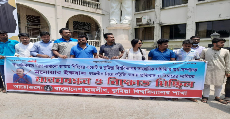 কুমিল্লা বিশ্ববিদ্যালয় সাংবাদিক সমিতি'র অর্থ-সম্পাদক ইকবাল মনোয়ার ছাত্রলীগ নিয়ে 'কটুক্তি' করার প্রতিবাদ ও বিচারের দাবিতে মানববন্ধন ও বিক্ষোভ মিছিল করেছে কুবি শাখা ছাত্রলীগের (রেজা-স্বজন) একাংশ।