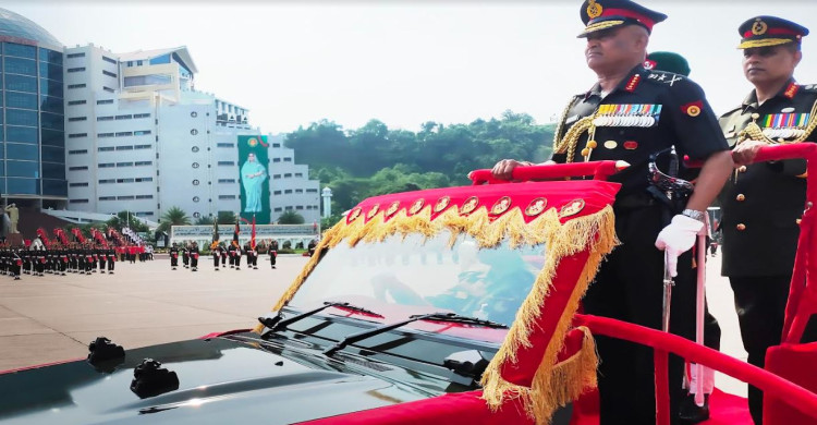 বাংলাদেশ মিলিটারি একাডেমিতে রাষ্ট্রপতি কুচকাওয়াজে অভিবাদন গ্রহণ করেন : জেনারেল মনোজ পান্ডে।