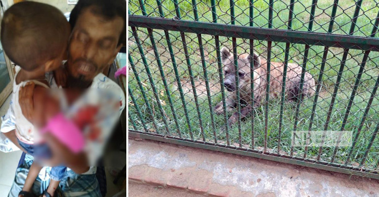 চিড়িয়াখানায় খাচা বন্দী হায়েনার আক্রমণ আহত ২ বছেরের শিশু। শিশুটির গ্রামের বাড়ি রংপুর জেলায়,