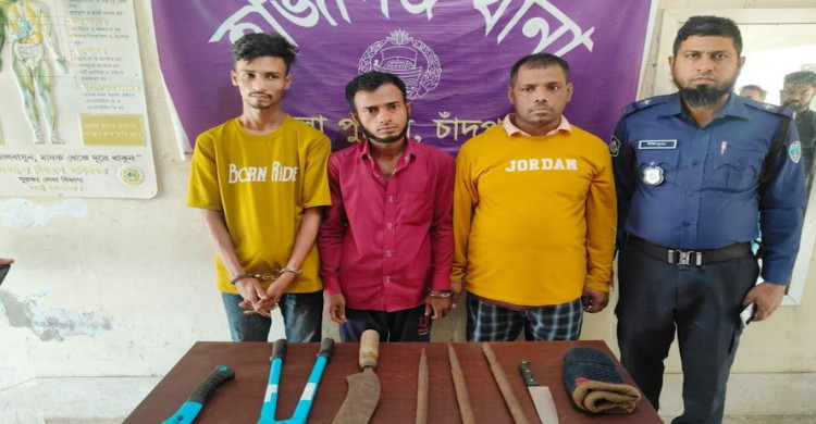চাঁদপুরে অস্ত্রসহ ডাকাত দলের ৩ সদস্য গ্রেপ্তার