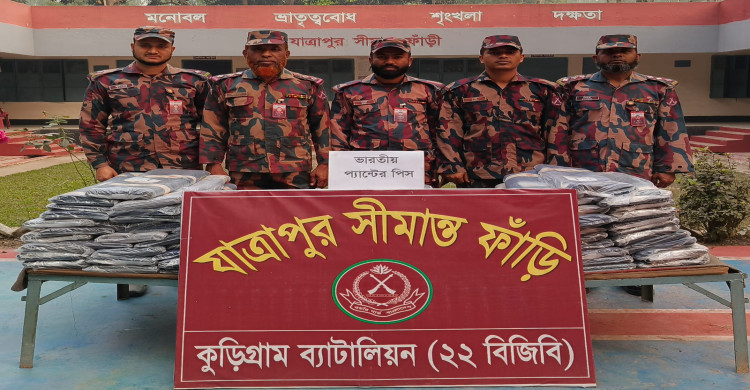 কুড়িগ্রামে বিজিবির অভিযানে বিপুল পরিমাণে ভারতীয় প্যান্ট পিস জব্দ