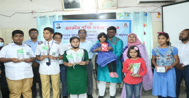 গোবিন্দগঞ্জে মজবুত হলে পুষ্টির ভিত,স্মার্ট বাংলাদেশ হবে নিশ্চিত' এই প্রতিপাদ্দে জাতীয় পুষ্টি সপ্তাহ পালিত হয়েছে। উপজেলা স্বাস্থ্য ও পরিবার পরিকল্পনা কর্মকর্তা ডা.জাফরিন জাহেদ জিতির আয়োজনে উপজেলা স্বাস্থ্য কমপ্লেক্স হল রুমে অনুষ্ঠিত হয়। এ উপলক্ষে গত এক সপ্তাহ ব্যাপী নানা কর্মসূচি মধ্যদিয়ে পালিত হয়। এর মধ্য রয়েছে মা সমাবেশ, এএনসি ক্যাম্পেইন, শিশু রোগী ও তাদের মায়েদের জন্য পুষ্টি বার্তা প্রদান কর্মসূচি, প্রবীণ রোগীদের অসংক্রামক ব্যাধি স্ক্রিনিং, ফ্রী ব্লাড প্রেশার ও ডায়াবেটিস পরীক্ষা, হেল্থ কাউন্সিলিং ও পুষ্টি বার্তা প্রদান, জুম্মার বয়ানে পুষ্টি বিষয়ক বিশেষ আলোচনা, এতিমখানায় পুষ্টিকর খাবার বিতরণ, পৌরসভা ও ইউনিয়ন পর্যায়ে বিশেষ স্বাস্থ্যসেবা ক্যাম্পেইন ও পুষ্টিবার্তা প্রদানের ব্যবস্থা করা হয়। শিশু হতে ৫ম শ্রেণী পর্যন্ত বাচ্চাদের জন্য জাতির জনক বঙ্গবন্ধুর পুষ্টি ভাবনা বিষয়ক আড়ম্বরপূর্ণ বিশেষ চিত্রাঙ্কন প্রতিযোগিতা ও ৬ষ্ঠ হতে ১০ম শ্রেণী পর্যন্ত শিক্ষার্থীদের জন্য চারটি পর্যায়ে উপস্থিত বক্তৃতা ও পুষ্টি বিষয়ক কুইজ প্রতিযোগীতার অনুষ্ঠিত হয় এবং ছাত্র-ছাত্রীদের মাঝে পুরস্কার বিতরন করা হয়। ডা.জাফরিন জাহেদ জিতির সভাপতিত্বে পুষ্টি সপ্তাহের সমাপনী অনুষ্ঠানে প্রধান অতিথি হিসেবে উপস্থিত থেকে বক্তব্য রাখেন, উপজেলা পরিষদ চেয়ারম্যান ও আওয়ামীলীগের সভাপতি আব্দুল লতিফ প্রধান, উপজেলা নির্বাহী অফিসার আরিফ হোসেন, উপজেলা কৃষি কর্মকর্তা রেজা-ই-মাহমুদ, মেডিকেল অফিসার ডা. নুসরাত, ডা.ইমরান হাসান, থানা দায়িত্বপ্রাপ্ত কর্মকর্তা জনাব ইজার উদ্দিন, মাধ্যমিক শিক্ষা অফিসার শাহ আলম পারভেজ,উপজেলা সমাজ সেবা কর্মকর্তা শফিউল ইসলাম মন্ডল, মহিলা বিষয়ক কর্মকর্তা ফারজানা আক্তার, সহকারী উপজেলা প্রাথমিক শিক্ষা অফিসার বোরজাহান কবীর, সহ ছাত্রছাত্রী ও অভিভাবক বৃন্দ উপস্থিত ছিলেন।