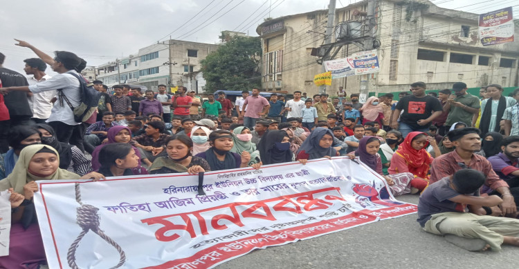 নোয়াখালীতে মা-মেয়েকে কুপিয়ে হত্যা, বিচারের দাবিতে রাস্তায় দাঁড়ালেন শিক্ষার্থীরা