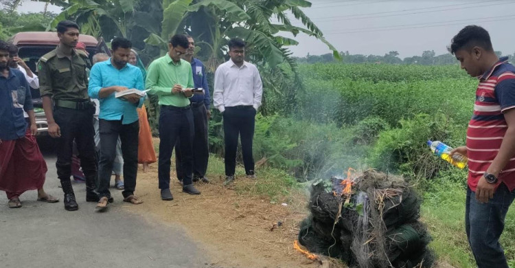 ফরিদপুরের নগরকান্দায় ভ্রাম্যমাণ আদালতের অভিযানে অবৈধভাবে মাছ শিকারে ব্যবহৃত চায়না দুয়ারী জাল জব্দ ও আগুনে পুড়িয়ে ধ্বংস করা হয়েছে।