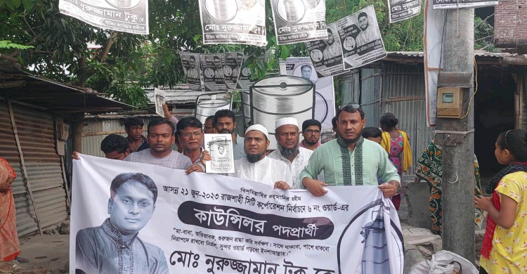রাজশাহী সিটি কর্পোরেশন নির্বাচন উপলক্ষে ৬ নং ওয়ার্ডে কাউন্সিলর প্রার্থী নুরুজ্জামান টুকুর পক্ষে বিশাল প্রচার মিছিল অনুষ্ঠিত হয়েছে। প্রচার মিছিলে ওয়ার্ডের কয়েক হাজার নারী-পুরুষ অংশ নেয়। এতে প্রচার মিছিলটি জনসমুদ্রে পরিনত হয়। গত দুই বারের নির্বাচিত জনপ্রিয় কাউন্সিলর মোঃ নুরুজ্জামান টুকু এবার নির্বাচনে টিফিন ক্যারিয়ার প্রতীক নিয়ে প্রতিদ্বন্দ্বিতা করছেন।