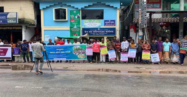 তামাক ক্রয়ের উপর আয়কর প্রত্যাহাসহ ৫ দাবিতে মানববন্ধন ও কর অফিস ঘেরাও
