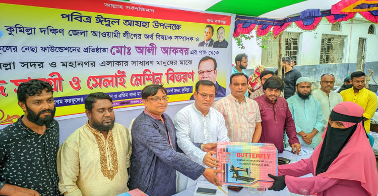 পবিত্র ঈদুল আযহা উপলক্ষে কুমিল্লা দক্ষিণ জেলা আওয়ামীলীগের অর্থ বিষয়ক সম্পাদক ও বেগম করফুলেরনেছা ফাউন্ডেশনের প্রতিষ্ঠাতা মোঃ আলী আকবরের উদ্যোগে ১ হাজার পরিবারে ঈদ সামগ্রী ও ৫০ জন নারীকে সেলাই মেশিন বিতরণ করা হয়েছে।