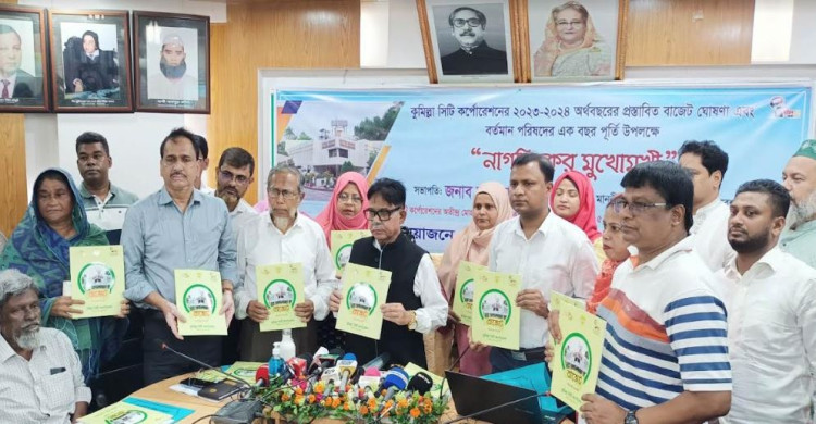 কুমিল্লা সিটিকর্পোরেশনের (২০২৩ -২৪ )অর্থবছরের ৭৪৮কোটি ৩৭লক্ষ ৬৫হাজার৫০টাকা ৬৯পয়সার বাজেট ঘোষণা করেন মেয়র আরফানুল হক রিফাত।