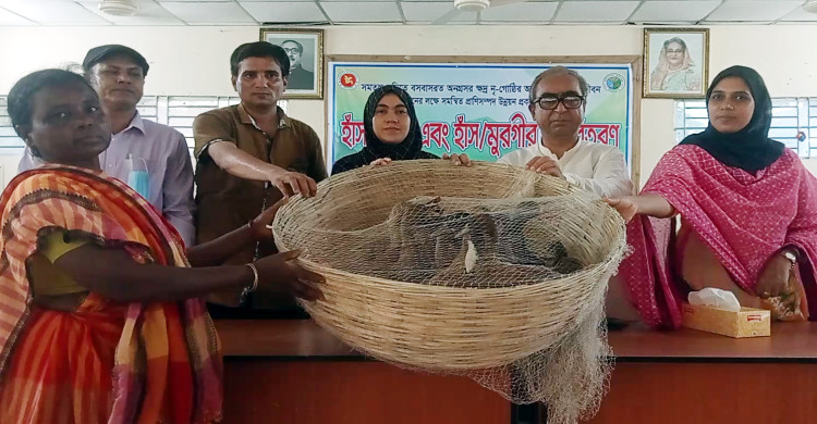 পাঁচবিবিতে ক্ষুদ্র নৃ-গোষ্ঠির মাঝে হাঁস বিতরণ