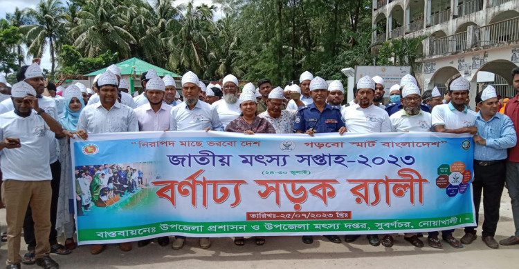 "নিরাপদ মাছে ভরবো দেশ, গড়বো স্মার্ট বাংলাদেশ" এ প্রতিপাদ্যকে সামনে রেখে নোয়াখালী সুবর্ণচরে জাতীয় মৎস্য সপ্তাহ-২০২৩ উপলক্ষে র্যালি, আলোচনা সভা, প্রামাণ্যচিত্র প্রদর্শনী ও পুরস্কার বিতরণী অনুষ্ঠিত হয়েছে।