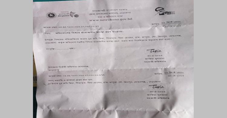 এ বিষয় উল্লেখ কওে ৮ নম্বর ওয়ার্ডের সাবেক মেম্বার ও ফাগুয়া গ্রামের বাসিন্দা নুরকবি মিয়া গত ৫ এপ্রিল জেলা প্রশাসকের কাছে লিখিত অভিযোগ করেন। অভিযোগের সাথে প্রমাণ যুক্ত করে জমা দেন তিনি। একই অভিযোগ তিনি ময়মনসিংহ বিভাগীয় দুর্নীতি দমন কমিশন (দুদক) আঞ্চলিক কার্যালয়ে করেন। পরে দুদকে করা অভিযোগের প্রেক্ষিতে নেত্রকোনা স্থানীয় সরকার বিভাগের উপ-পরিচালক (ভারপ্রাপ্ত) বিপিন চন্দ্র বিশ্বাস গত ২৮ এপ্রিল উভয় পক্ষকে ডেকে তথ্য প্রমাণ উপস্থাপন করতে বলেন।