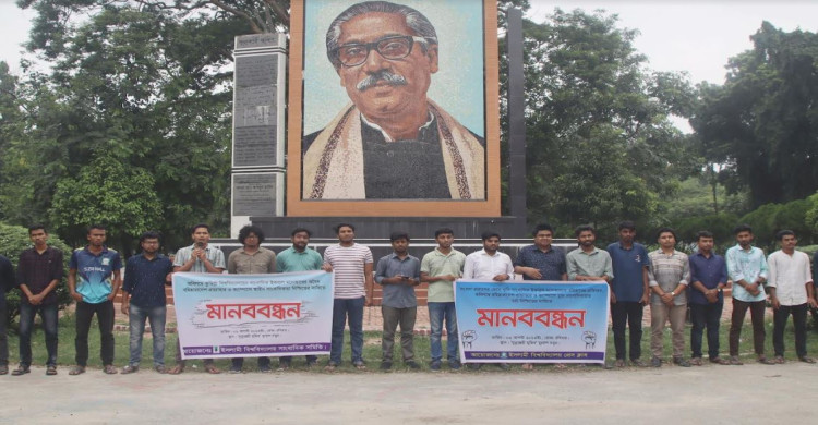 কুবি সাংবাদিকের বহিষ্কারাদেশ প্রত্যাহারের দাবিতে ইবিতে মানববন্ধন