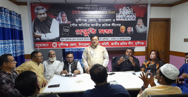 ১৫ই আগস্ট জাতীয় শোক দিবস পালনে মুন্সিগঞ্জ জেলা শ্রমিকলীগের প্রস্তুতি সভা অনুষ্ঠিত হয়েছে। জেলা শ্রমিকলীগের আয়োজনে এতে অংশ নেয় ৬ উপজেলা শ্রমিকলীগ, পৌর শ্রমিকলীগ সহ অন্যান্য নেতাকর্মীরা।