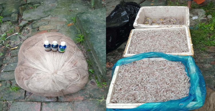 সুন্দরবনে বিষ, জাল সহ ২০০ কেজি চিংড়ী আটক