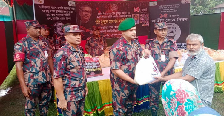 স্বাধীনতার মহান স্থপতি সর্বকালের সর্বশ্রেষ্ঠ বাঙালি জাতির পিতা বঙ্গবন্ধু শেখ মুজিবুর রহমানের ৪৮তম শাহাদাত বার্ষিকী ও জাতীয় শোক দিবস ২০২৩ উপলক্ষ্যে দেশব্যাপী কর্মসূচীর আওতায় বিজিবির সদস্যরা দুঃস্থদের মাঝে খাদ্যসামগ্রী বিতরন ও বিনাম‚ল্যে চিকিৎসা সেবা প্রদান করেছে।
