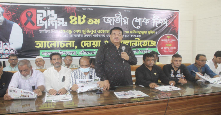 কুমিল্লার লাকসাম উপজেলায় ১৫ আগষ্ট (মঙ্গলবার) সকালে উপজেলা মুক্তিযোদ্ধা কমপ্লেক্স সংলগ্ন বঙ্গবন্ধু’র মুর্যালে পুস্পস্তবক অর্পণের মধ্যে দিয়ে জাতীয় শোক দিবস পালিত হয়েছে।