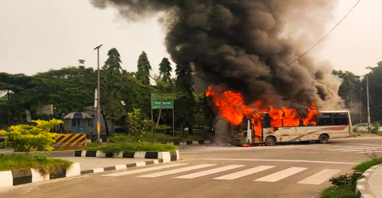 রাজধানীর আগারগাঁওয়ে বাসে আগুন