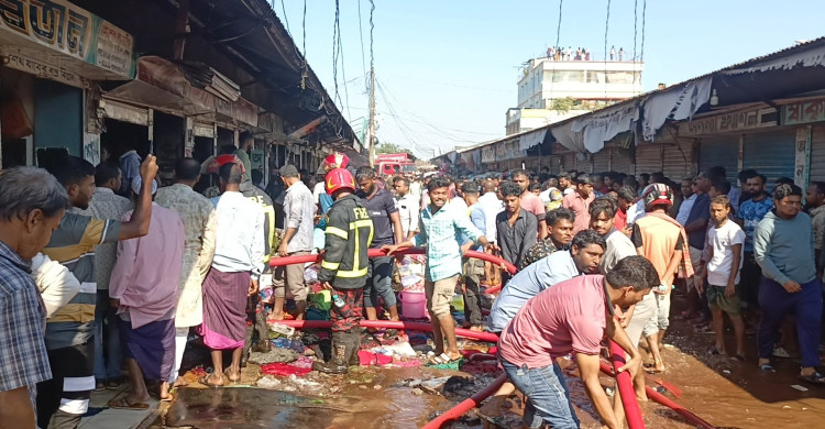 নেত্রকোনার মদনে মহিউদ্দিন মার্কেটে কাপড়ে দোকানে আগুন লেগে প্রায় ৪০টি দোকান পুড়ে চাই